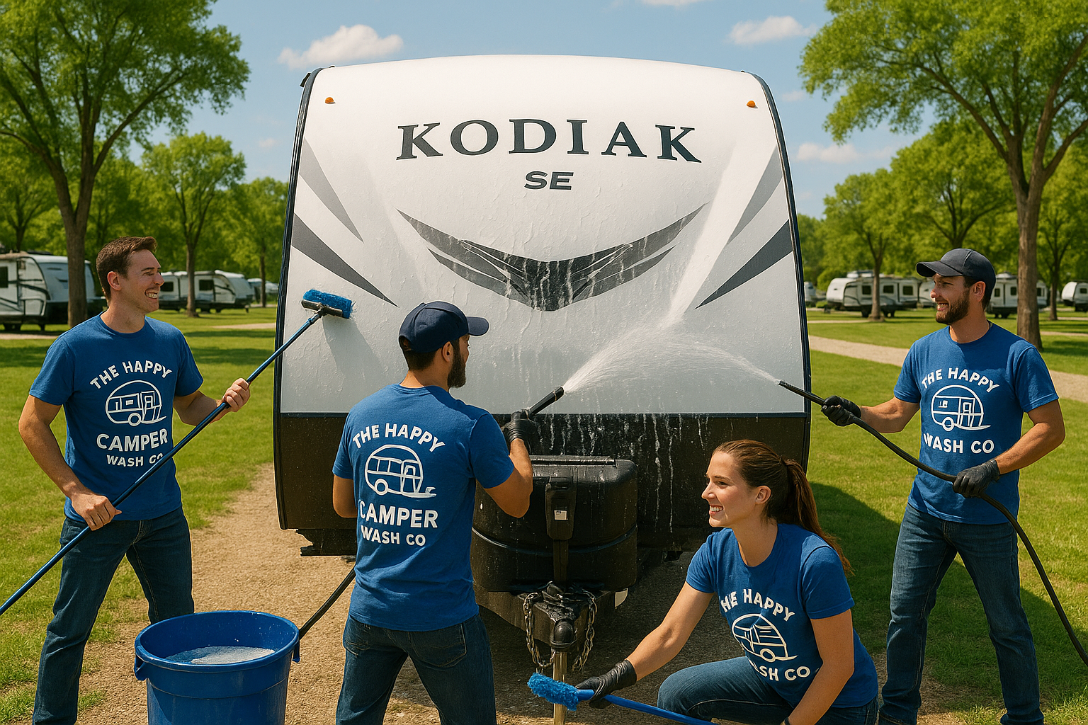 The **"Happy Medium" Wash** offers a balanced, high-quality clean that gives your RV the attention it deserves. This service goes beyond basic washing to leave your RV refreshed and ready for the road.
